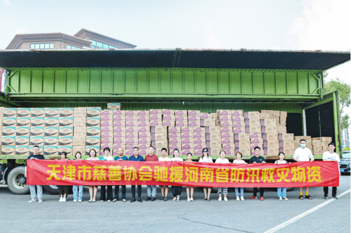 7月28日上午,董事長楊印江攜公司員工,趕往支援車輛現(xiàn)場,配合天津慈善協(xié)會進行物資配送及裝車工作。物資裝載完畢后,統(tǒng)一送往河南周口市災區(qū)。